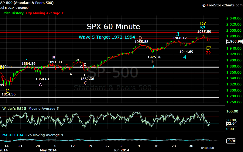 Minute chart. The SPX first completed a 5 wave sequence at 1974.88, which was